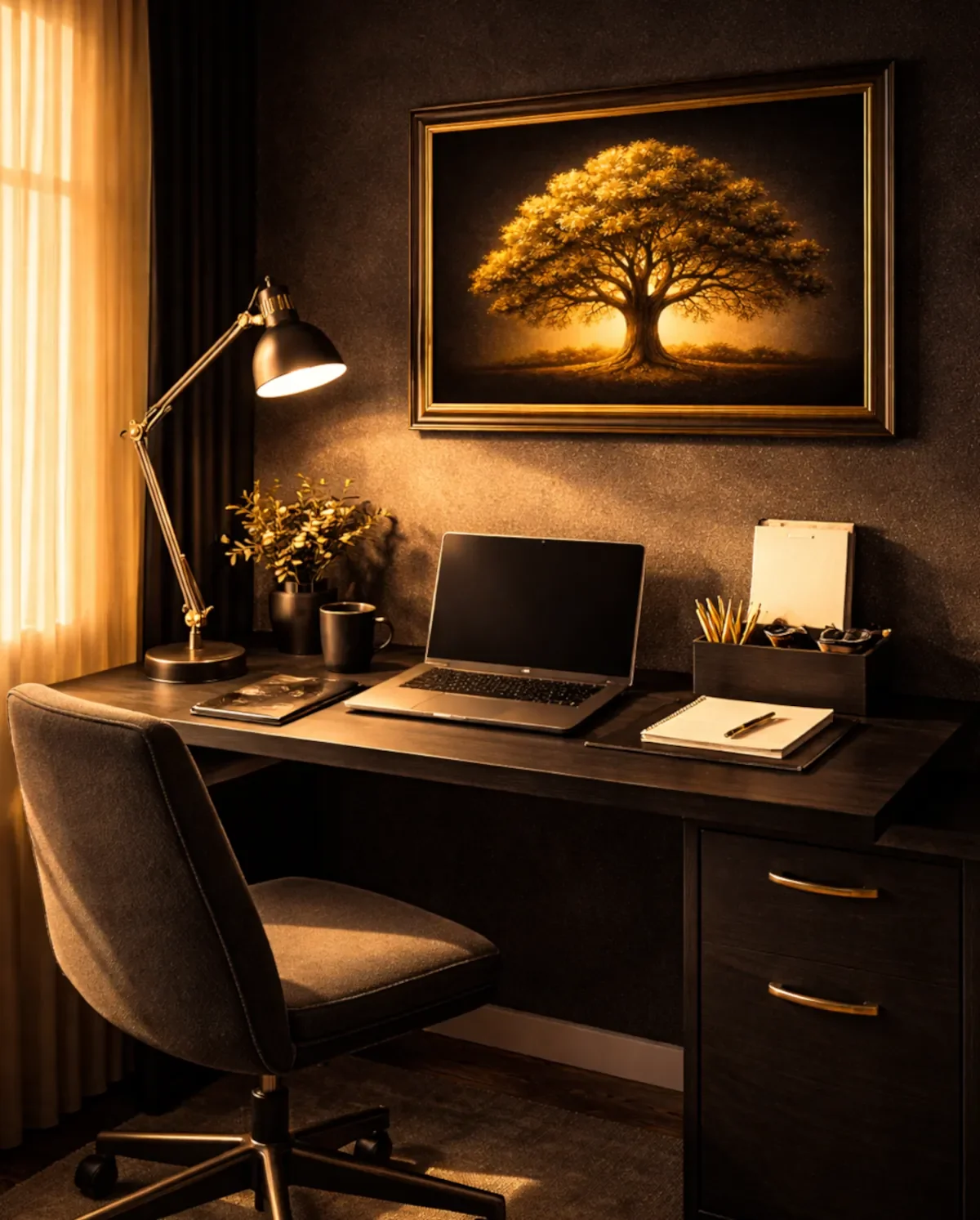The Golden Tree Series is bold, timeless art - often black and gold - that reminds you that rooted growth outlasts rushed progress.